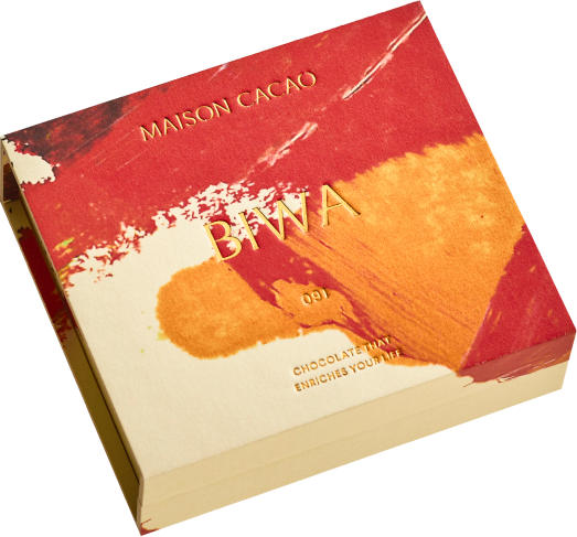 ほのかなキャラメルやナッツのような味わいを持つ柔らかなミルクチョコレートがベース。合わせるのは、長崎県のみずみずしいのビワ「なつたより」を、丁寧に煮詰めて香りを凝縮させました。繊細なビワの味わいを表現するために数年がかりで開発した生チョコレートです。