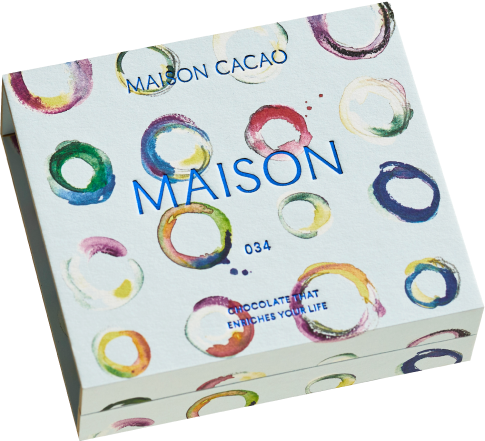 酸味、甘み、ビター感のバランスの良い華やかなビターチョコレートがベース。合わせるのは山梨の専用農園で秋に収穫した大粒のシャインマスカット。みずみずしくハリのある粒をあえて追熟し萎ませ、甘みとマスカット香を一層香り立たせて使用しています。アクセントにはシャルドネワインを合わせて。メゾンカカオのシグネチャー、毎年変わる味わいをお楽しみください。